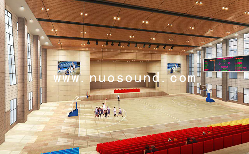 一般來說,多功能體育館建筑聲學設(shè)計的基本要求是要達到足夠的響度、滿意的清晰度、全場有比較均勻的效果以及無回聲干擾等物理缺陷,除了基本的設(shè)計之外,吸音材料的選擇也很重要。諾聲聲學向校方推薦的產(chǎn)品是諾聲體育館孔木吸音板。